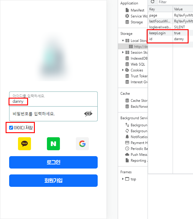 localStorage.keepLogin = true; // 로컬 스토리지에 Id저장을 True로 저장