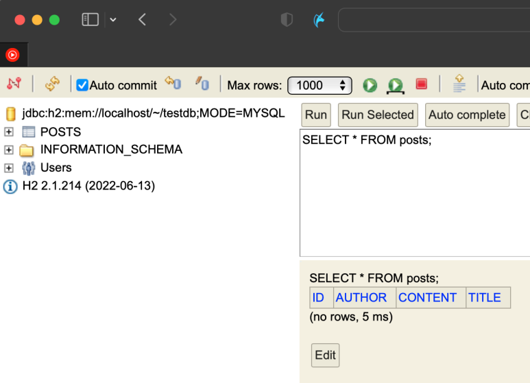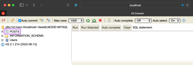 Connect이후 위와 같이 POSTS테이블이 정상적으로 노출되어있어야 함