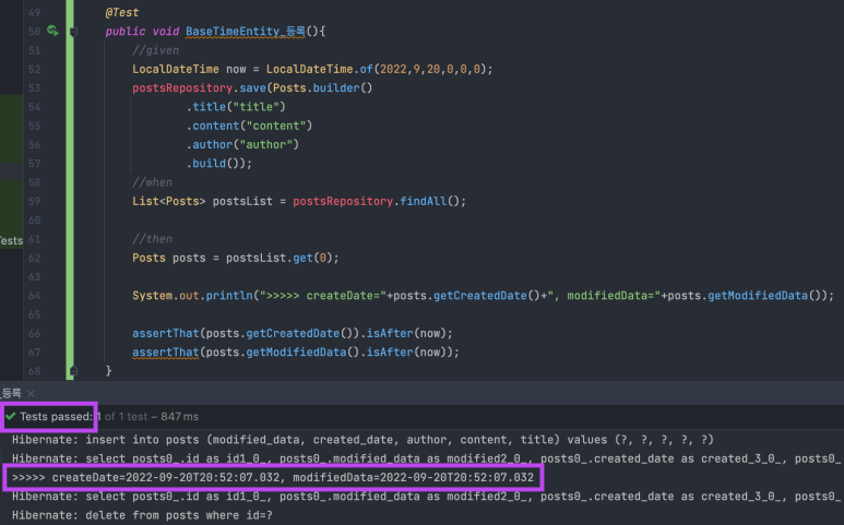 System.out.println(">>>>> createDate="+posts.getCreatedDate()+", modifiedData="+posts.getModifiedData());