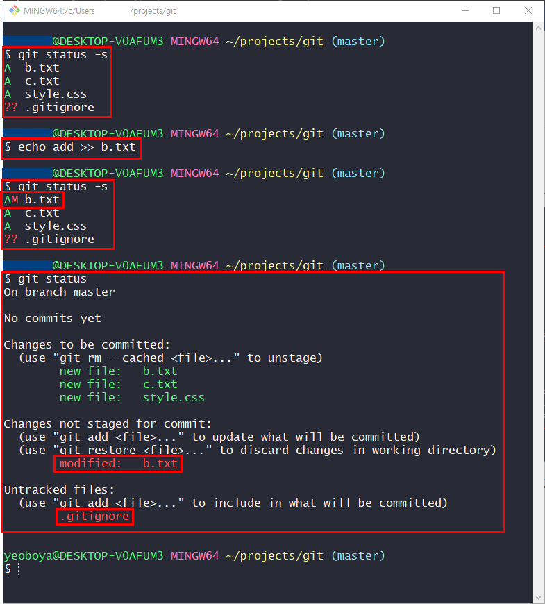 - git status -- 상세한 파일 상태 확인