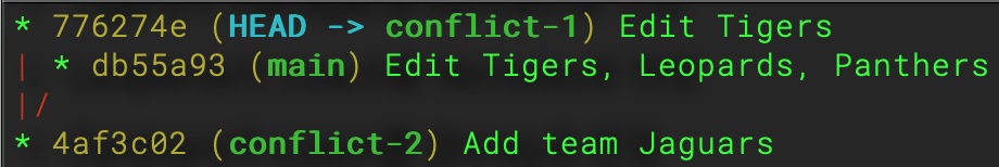 - conflict-1과 merge를 시도했을 때 충돌 발생